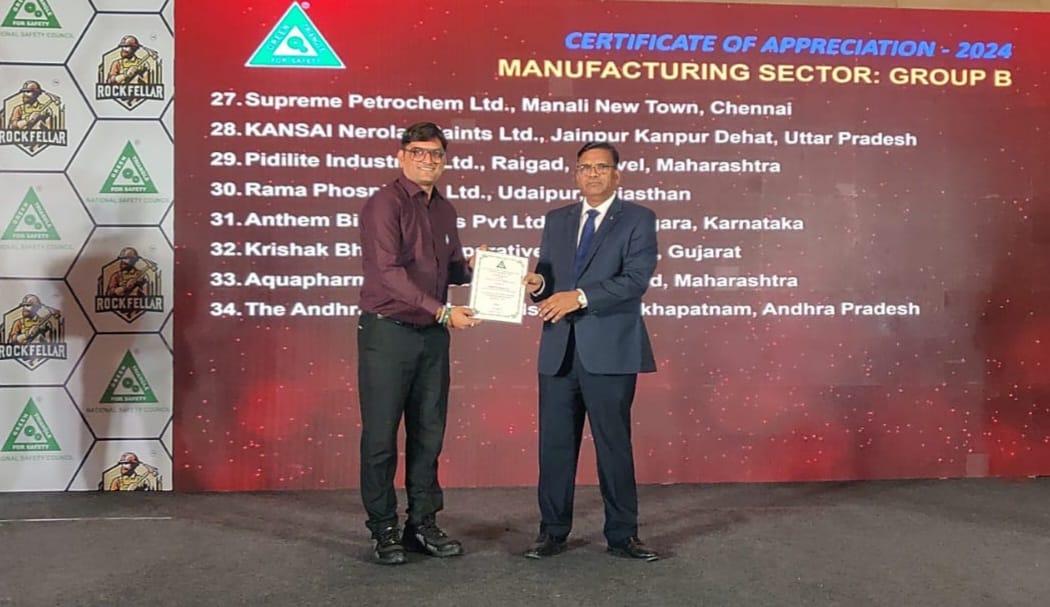 Gharda Panoli plant has been honored with an Appreciation Award from the National Safety Council in the Manufacturing Sector category. Ensuring workplace safety is crucial for protecting lives, enhancing productivity, and fostering a secure work environment.